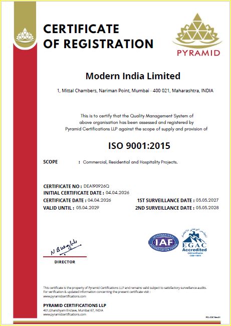 Modern India Ltd. proudly announces its dedication to upholding the highest standards of quality and efficiency through the adoption of ISO 9001:2015. This commitment reflects our relentless pursuit of excellence, customer satisfaction, and continuous improvement in all aspects of our operations.