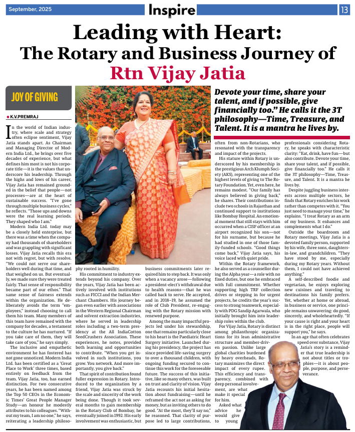 The Jatia family remains deeply committed to the greater good through meaningful CSR initiatives. Guided by a strong sense of responsibility and compassion, their efforts focus on creating lasting social impact.